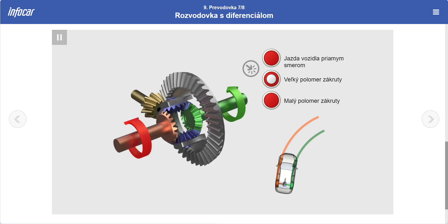Hlavnou pridanou hodnotou elearnigovej učebnice Infocar Academy sú pohyblivé obrázky, ktoré sú parametrizovateľné užívateľom počas používania produktu. Používateľ tak dokáže jednoduchou cestou porozumieť procesom, ku ktorým pri používaní vozidla dochádza.
